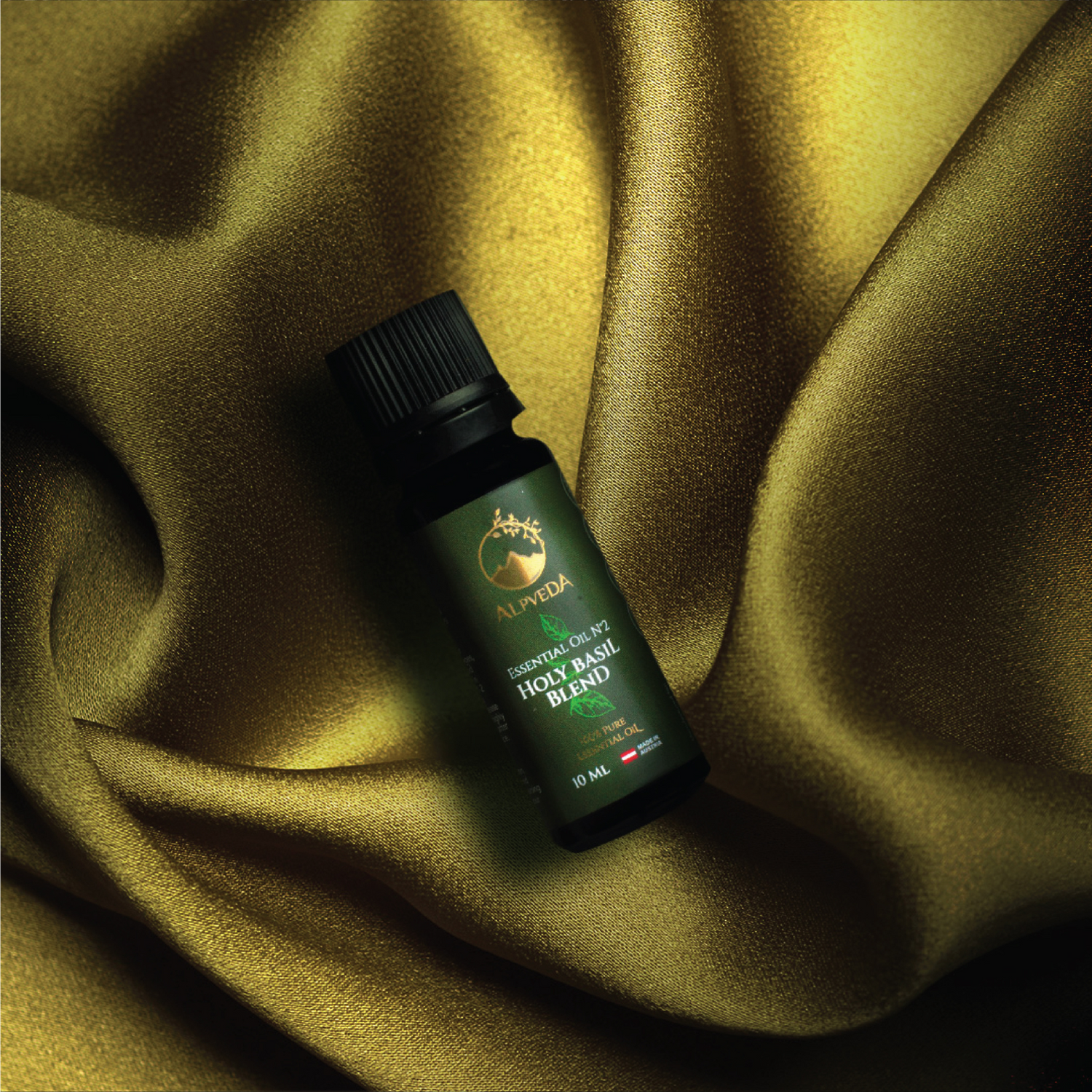 - Mix 3-4 drops holy basil blend essential oil with 10 ml of carrier oil or body lotion like and apply topically to promote healthy looking skin